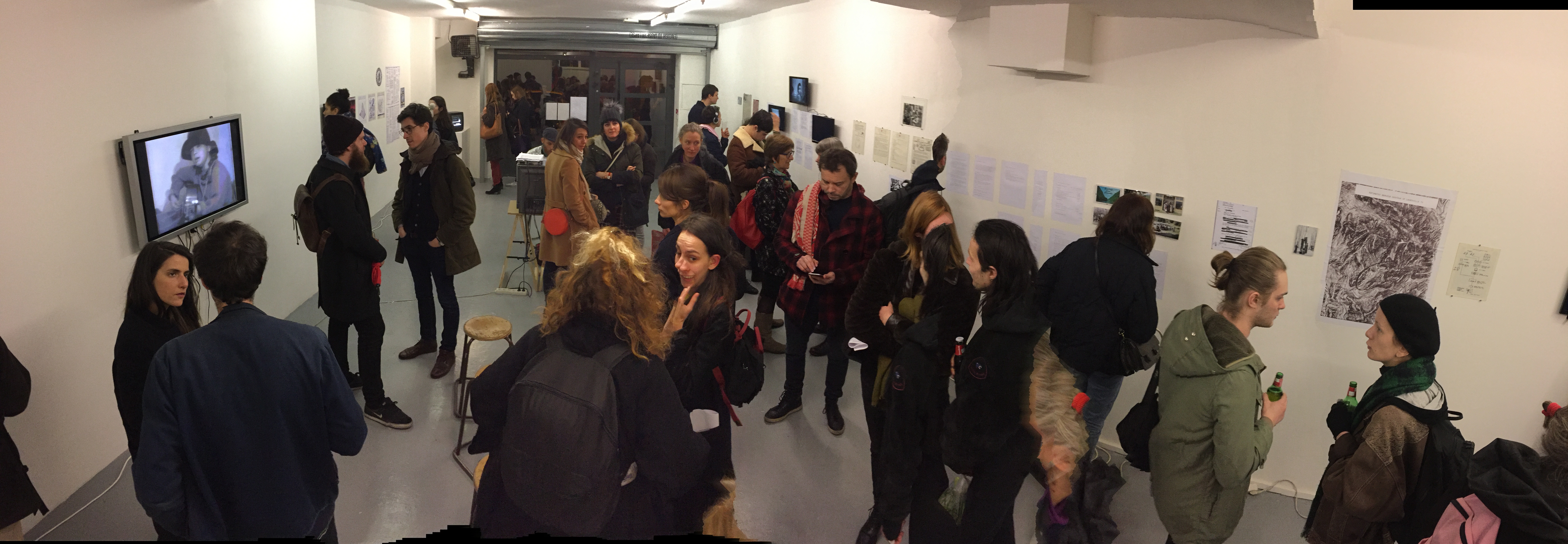 Visitors packed the opening night (vernissage) of Videofreex: Processing Activist Images on Tuesday, January 10 at Treize in Paris.